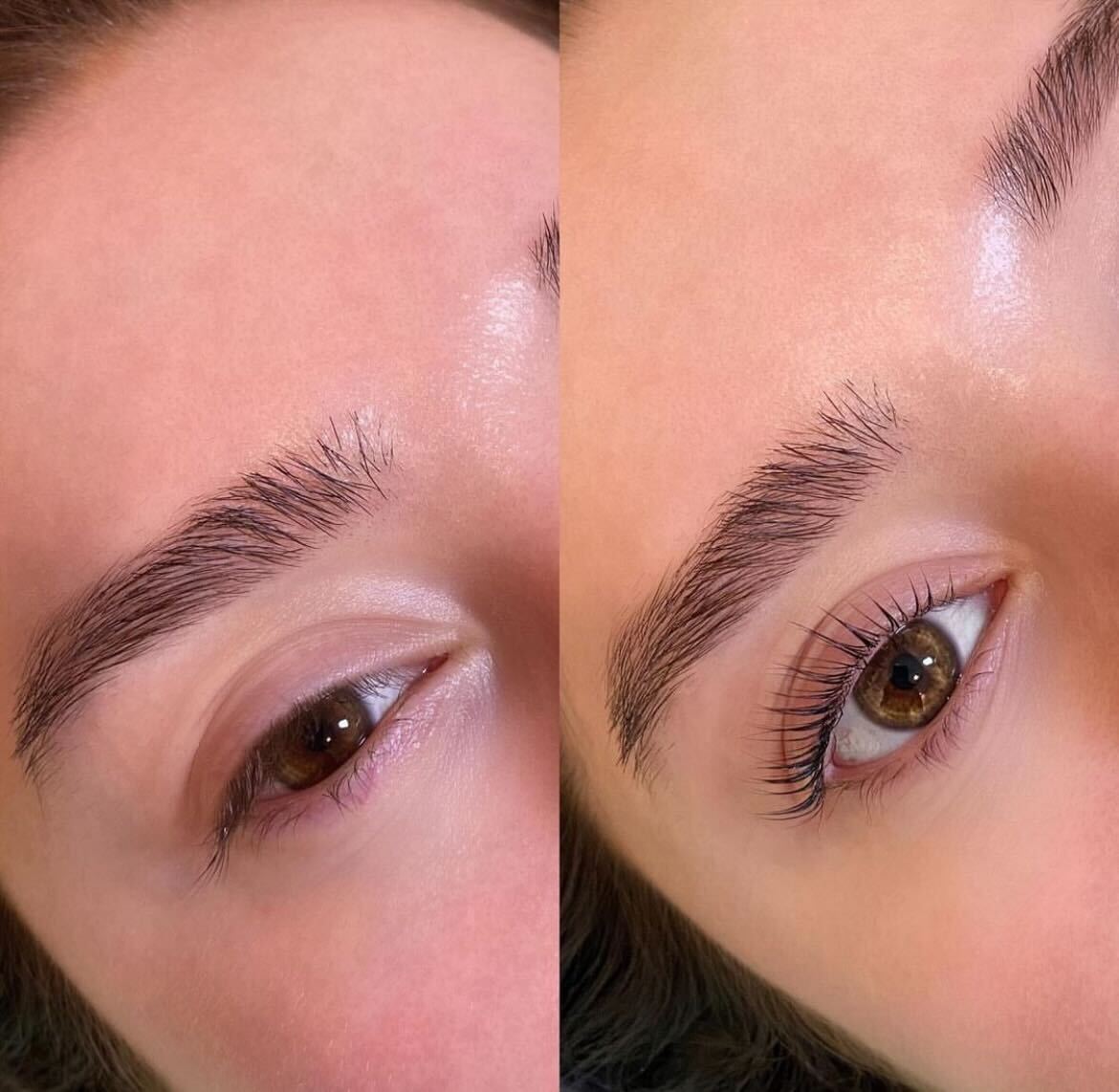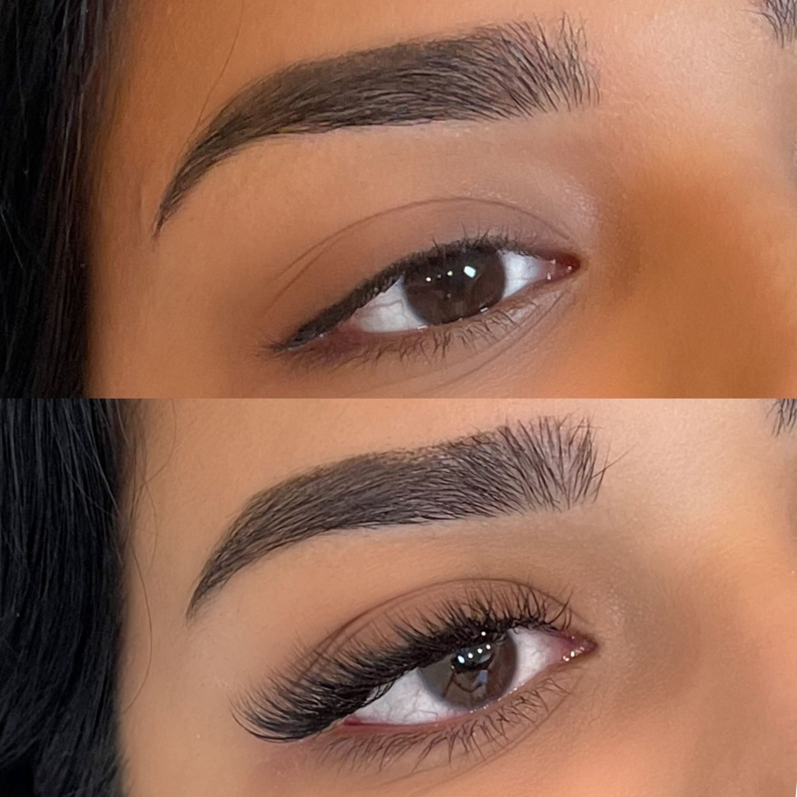 Brow lamination helps smooth and lift unruly or thinning brows. It allows the brows to look thicker and more fluffier.